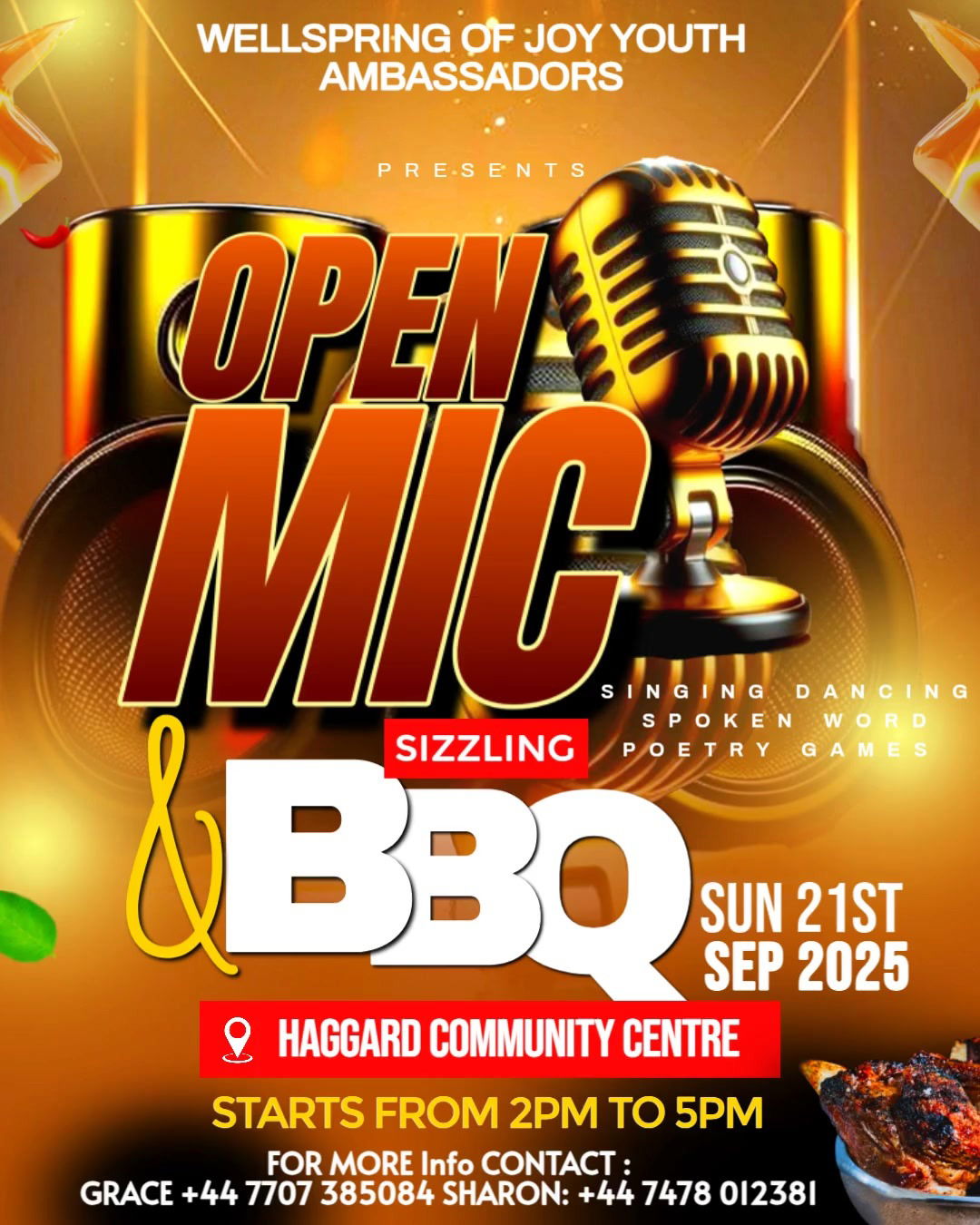 Wellspring of Joy Youth Ambassadors warmly invite young people and the wider community to an exciting Open Mic and BBQ gathering. This event is designed to create a relaxed and joyful space where creativity, fellowship, and faith come together.